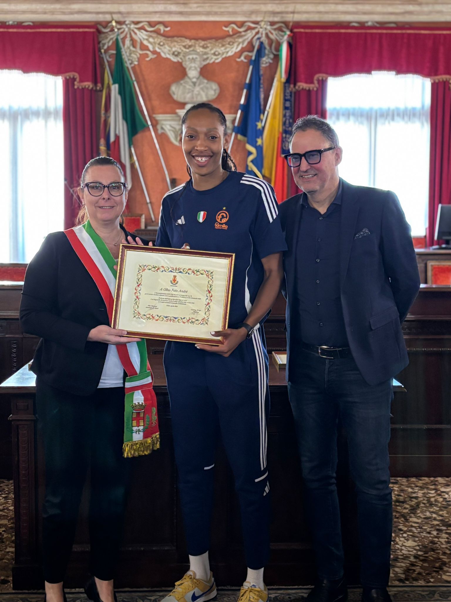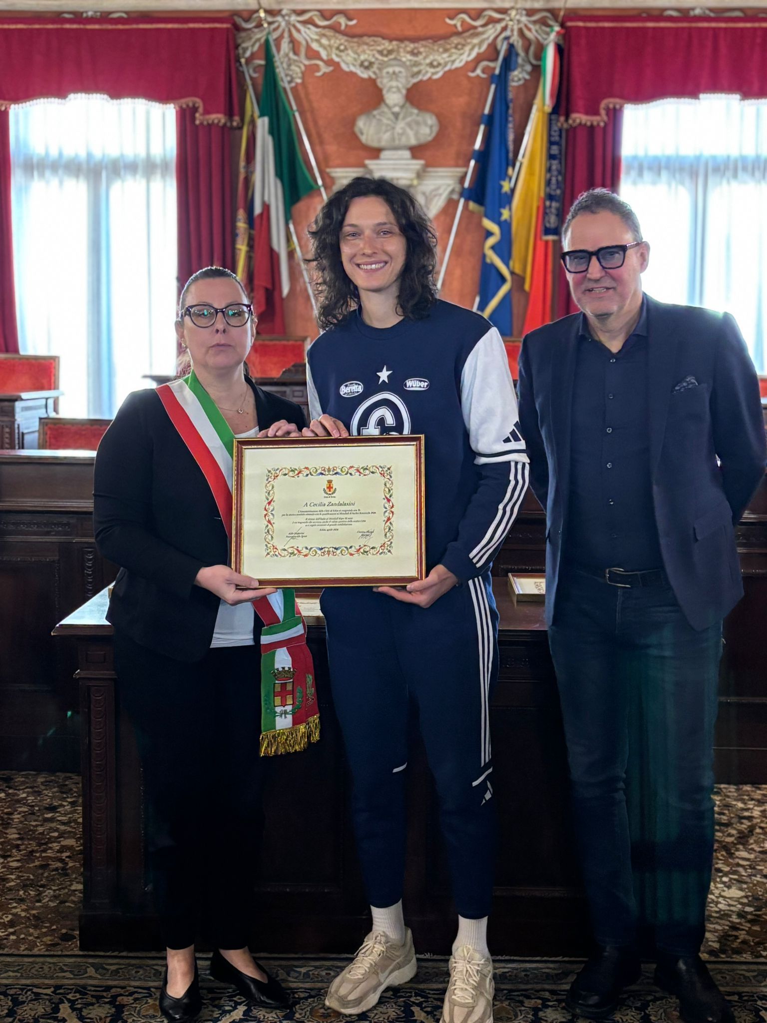 “Abbiamo voluto dare significato a un momento sportivo che definirei unico. Dopo trentadue anni la Nazionale di basket femminile si è qualificata per il Campionato del Mondo, superando la Spagna vicecampionessa europea e classificandosi alle spalle solo degli Stati Uniti campioni olimpici. Già questo sarebbe straordinario — ma il fatto che quattro delle protagoniste di quell’impresa giochino qui a Schio, e che ad esse si aggiunga il vice allenatore della Nazionale Alessandro Fontana, dà a questo risultato un valore ancora più grande per la nostra comunità. Un grande grazie alle atlete, allo staff tecnico, a tutta la squadra ma anche alla proprietà che negli anni sta investendo energie e risorse per portare in alto in nome della squadra e della nostra Città”, commenta Cristina Marigo, sindaco di Schio.