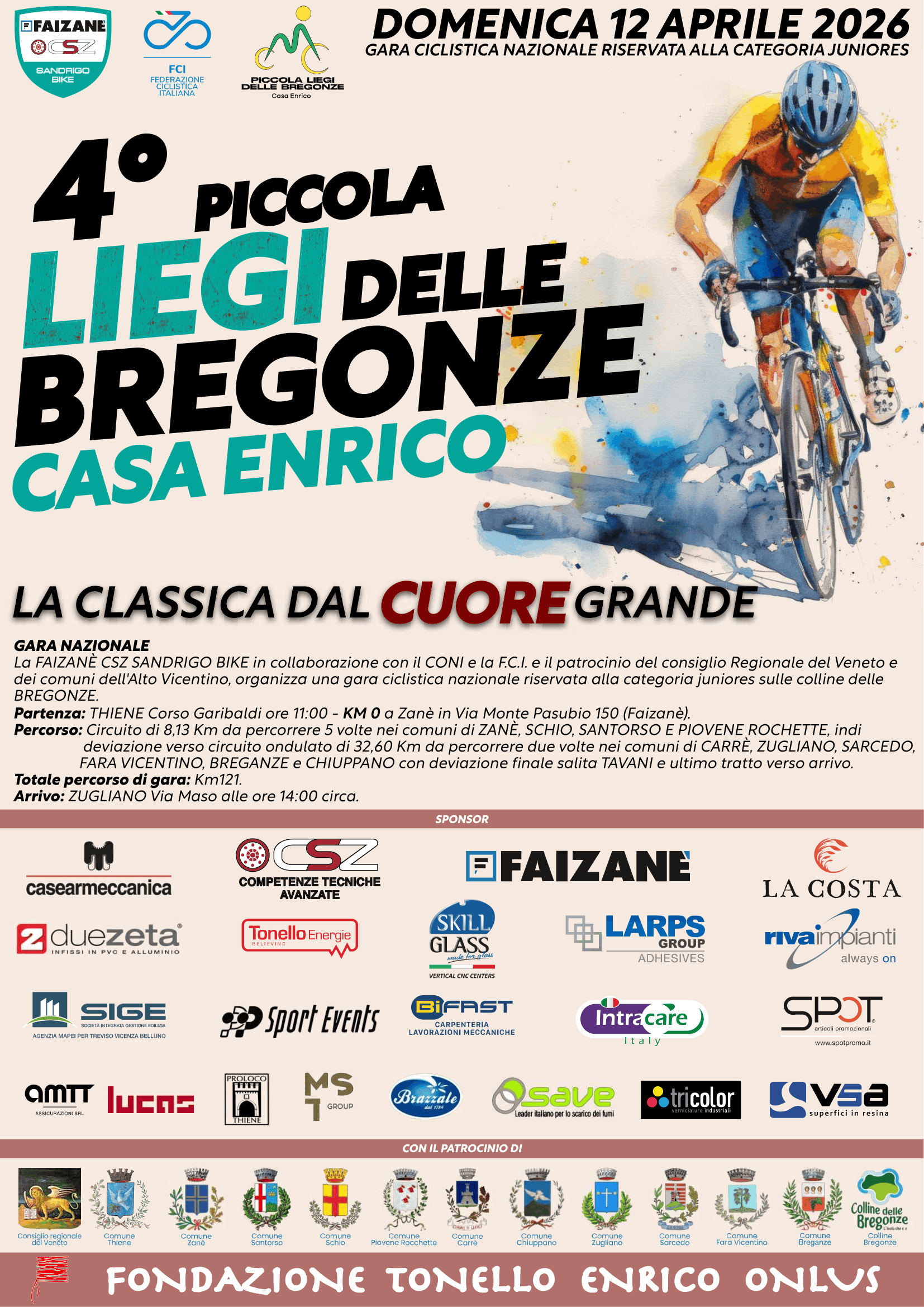 ❤️ Un evento che ha anche un valore speciale: la gara è dedicata alla Fondazione Tonello Enrico ONLUS, a sostegno di importanti progetti solidali.