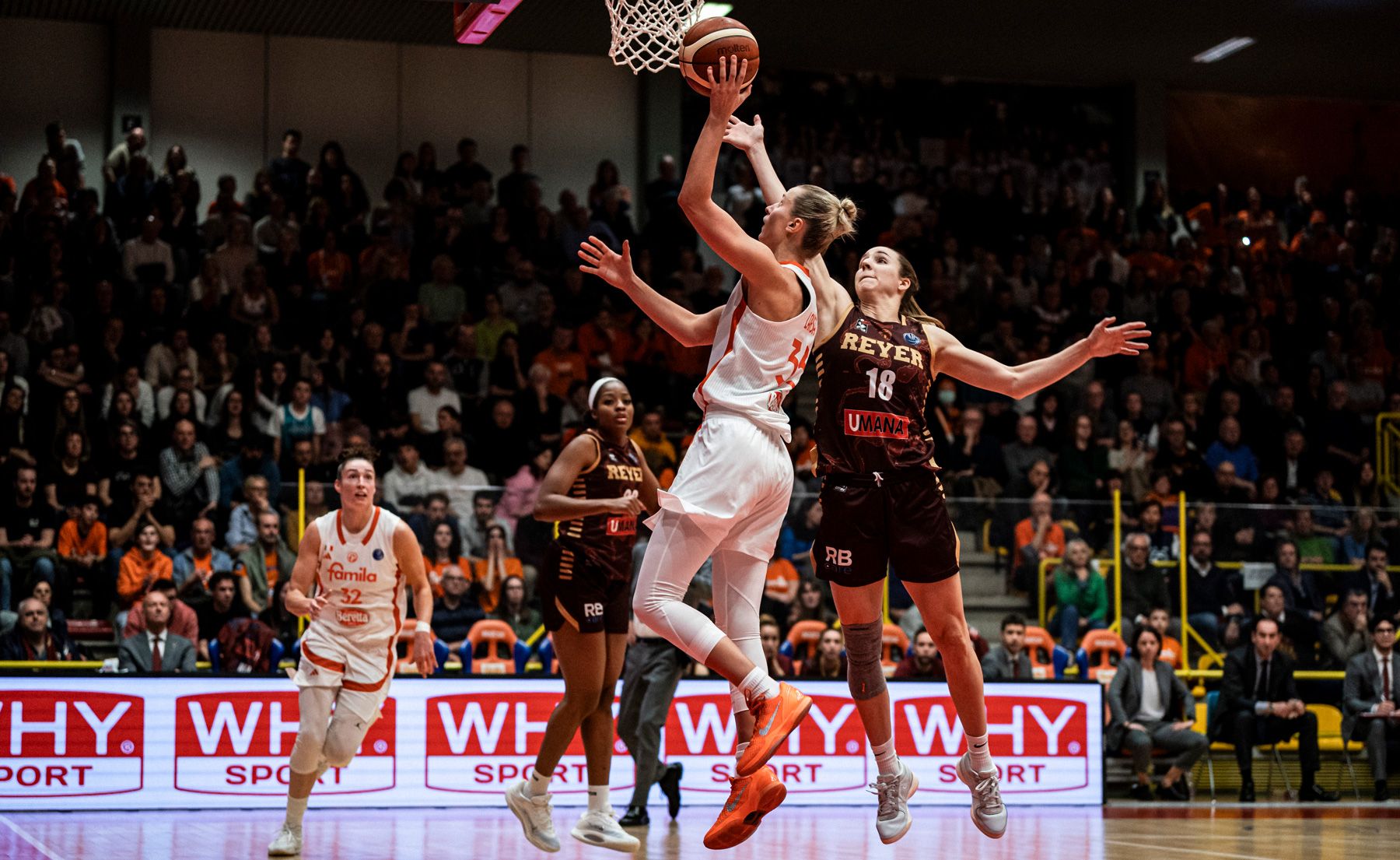 Si riparte con due violazioni dei 24 secondi che fanno capire l’intensità delle difese ma poi Shepard e Verona trovano due conclusioni semplici al ferro. Risponde Pan dall’arco sull’ennesimo possesso riciclato da rimbalzo d’attacco ma anche Laksa si fa trovare pronta dalla distanza: 43-41. Beretta che fa una fatica immensa sotto le plance così Mavunga e Charles banchettano in area mentre Shepard si mette in movimento con dei canestri dei suoi ma contemporaneamente purtroppo si infortuna alla caviglia Andrè.